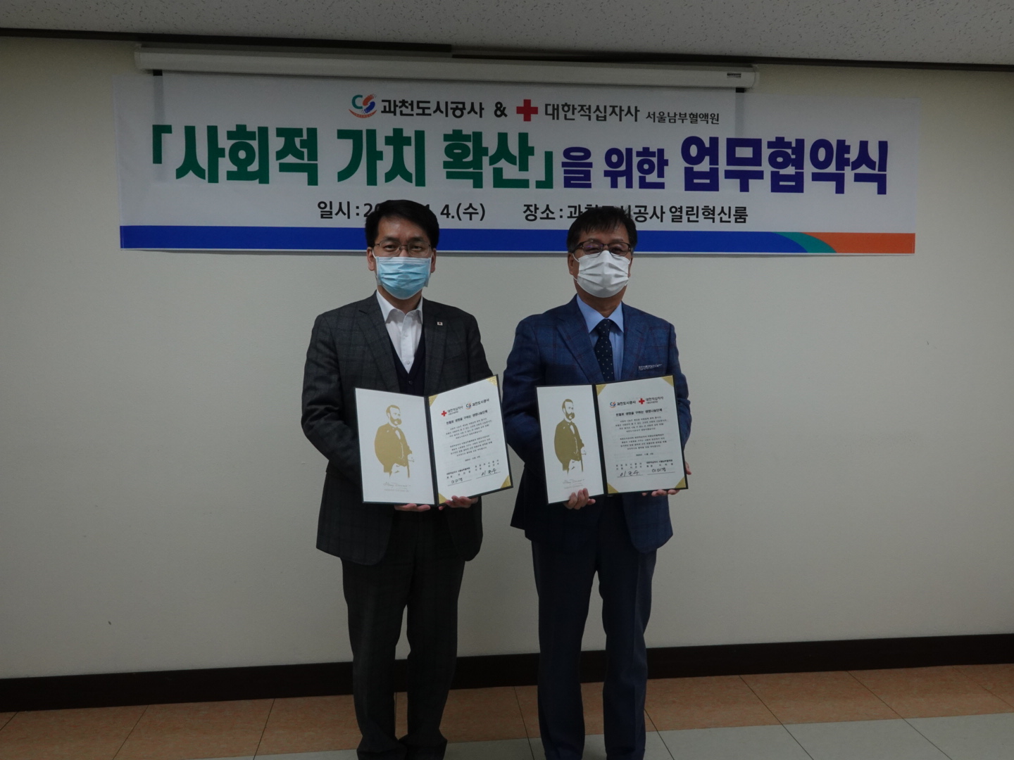 '사회적 가치 확산'을 위한 업무협약 과천도시공사·서울남부혈액원
