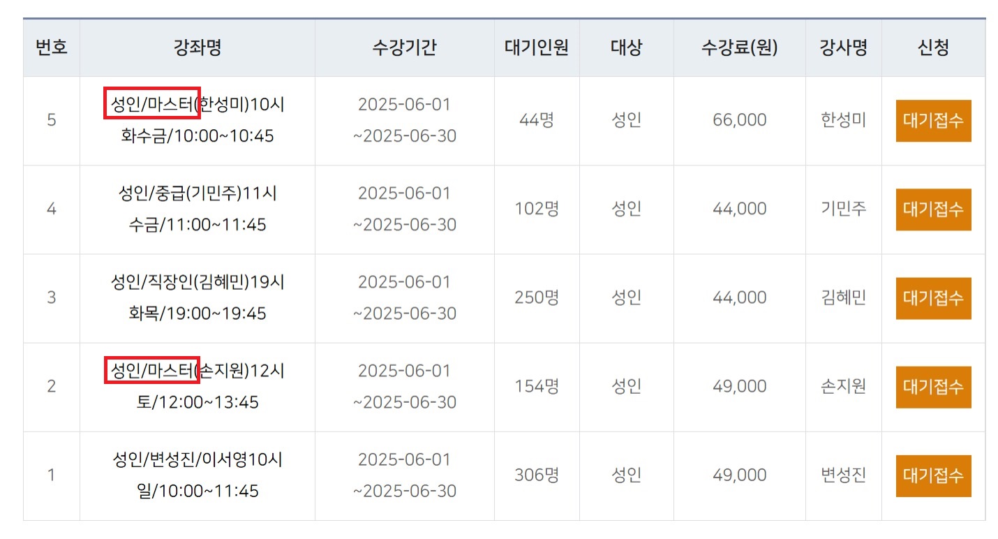 안녕하세요. 10년 이상 과천빙상장 피겨 강습반 이용중이며, 현재는 피겨 성인★마스터★ 토12 수강중입니다. 해당강좌 설명에 초중상급 레벨에 맞춰 강습이 가능하다고 되어있기는 하지만 토12시 강습반은 '마스터반'입니다. 화수금 10시에 개설된 동일한 성인마스터반이 초급 이상의 레벨 제한을 둔 것과는 차이가 있습니다. 최근 처음 배우는 분들이 많이 들어오면서 수강생 간 부딪힘 사고로 인한 부상이 있었습니다. 5종 점프와 대부분의 스핀을 배운 수강생들과 걸음마를 배우는 수강생이 같이 사용하다보니 속도 문제, 공간 배분 등으로 생길 수 있는 문제가 많습니다. 선생님도 양쪽을 오가며 수업을 진행하셔야 하니 모든 수강생의 안전에 유의할 수 없고, 레벨별 시간 배분 문제로 어느 한쪽은 소외감을 느끼게 되며, 강좌 만족도가 떨어질 수 밖에 없는 상황입니다. 동일한 문제로 수년 전 일요일 10시 성인반은 반은 1개이나 정원을 2배로 늘리고 선생님 추가 배정하여 레벨에 맞춰 수강생을 나눠 강습을 진행하고 있습니다. 소그룹도 아니고 정원이 15명인 단체반입니다. 초중상급 레벨에 맞춰 수업 진행이 가능한 인원이 아닙니다. 수영 종목에서 호흡과 발차기를 처음 배우는 수강생과 접영, 오리발 사용하는 수강생을 동일한 반, 동일한 레인에 배정할 수 있나요? 현재 성인/청소년을 위한 피겨 강습반은 5개에 불과합니다. 과거 피겨 강습 수요가 적을 시절 운영하던 강좌수를 유지하고 있습니다. 피겨가 과거에 비해 종목 인기도가 높아지고 성인, 청소년 층 강습 수요도 폭발적으로 증가하고 있는 점, 수년째 많게는 수백명의 대기자가 적체되어 있는 점, 빙상 타 종목과 비교하여도 어린이반에 비해 성인/청소년 반 개설비율이 매우 낮은 점 등을 감안하여 강좌 증설, 정원 조정, 분반 등 현실적인 대안을 마련해주시기를 부탁드립니다.