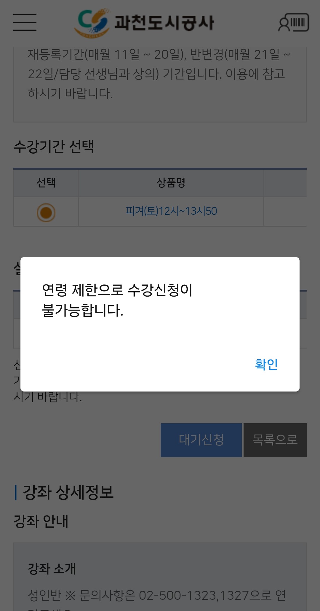 저는 성인 인데 연령제한으로 수강이 안된다고 뜹니다.