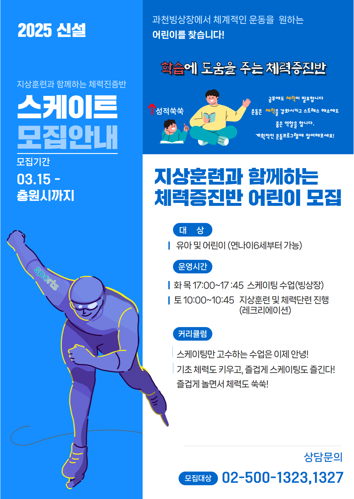 빙상장에서 '지상훈련과 함께하는 체력증진반'이 개설됩니다!
