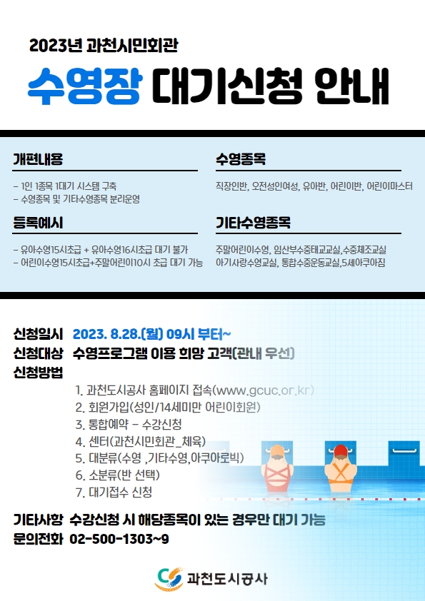 과천시민회관 수영장 온라인 대기 신청 안내