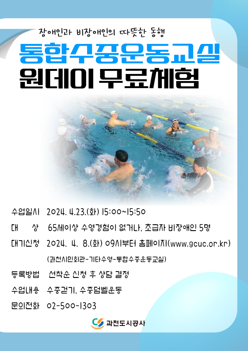 통합수중운동교실 원데이 무료체험 안내문