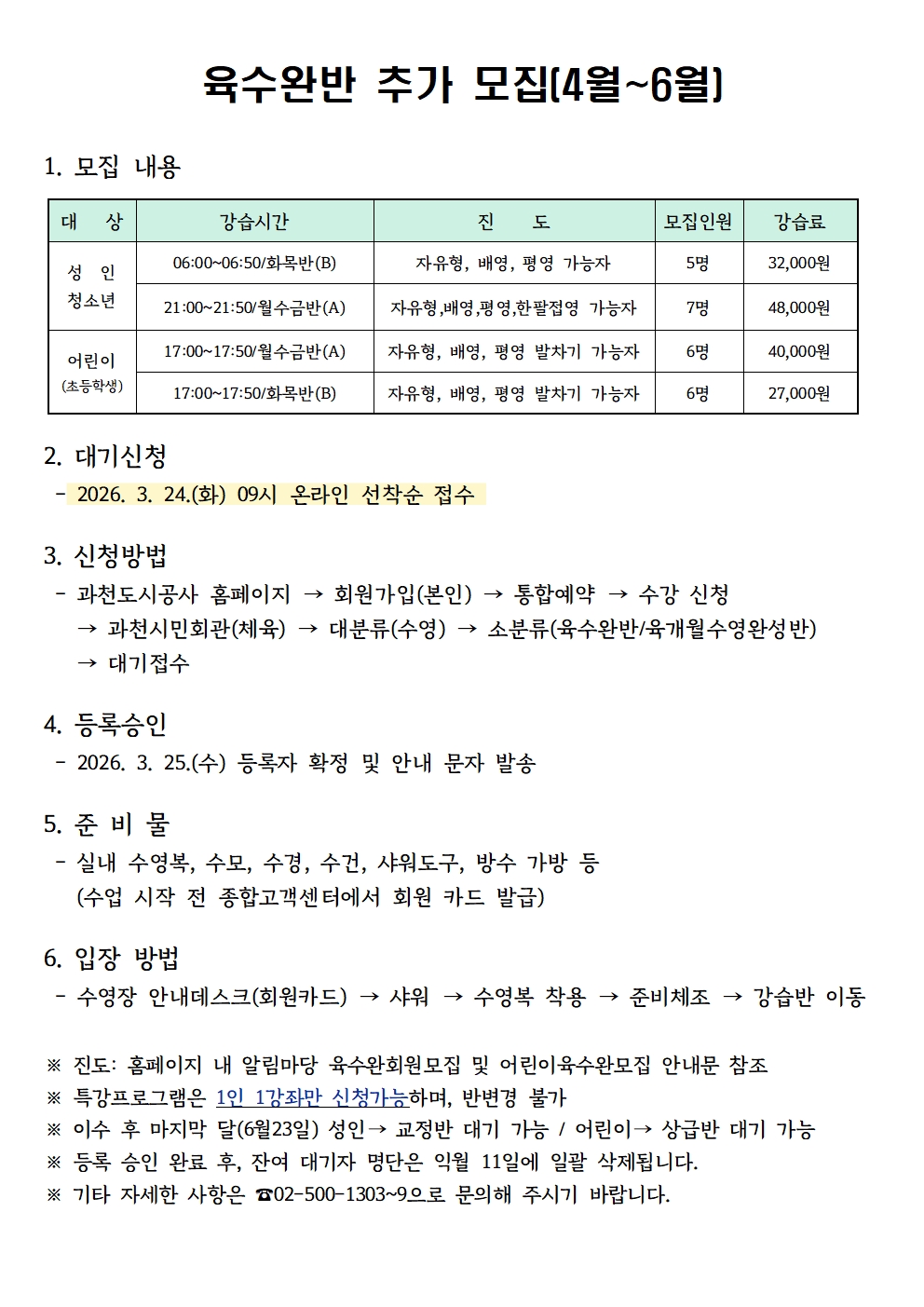 2026년 4월 육수완반 추가모집 안내