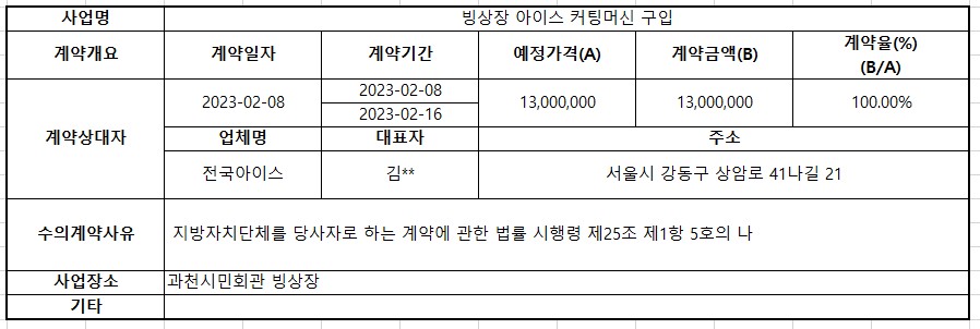 2023년 2월 수의계약 내역공개(빙상장 아이스 커팅머신 구입)