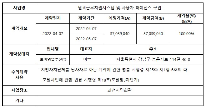 2022년 4월 수의계약 내역 공개(원격근무지원시스템 및 사용자 라이선스 구입)