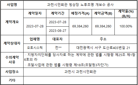 2023년 7월 수의계약 내역 공개(과천시민회관 빙상장 노후조명 개보수 공사(1))