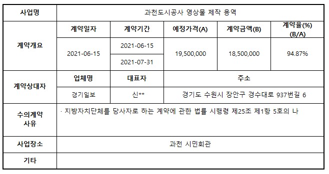 2021년 6월 수의계약 내역 공개(과천도시공사 영상물 제작 용역)