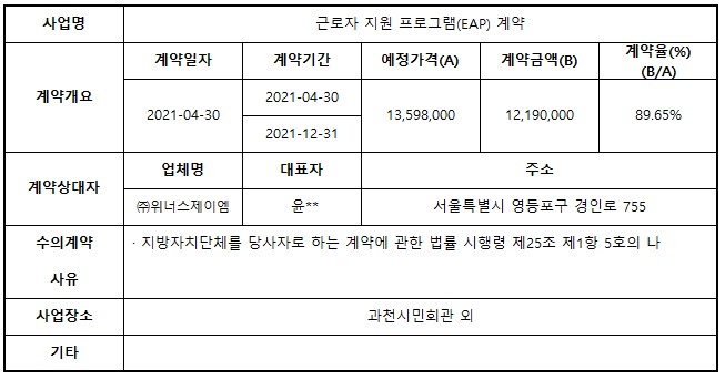 2021년 4월 수의계약 내역 공개(근로자 지원 프로그램(EAP) 계약)