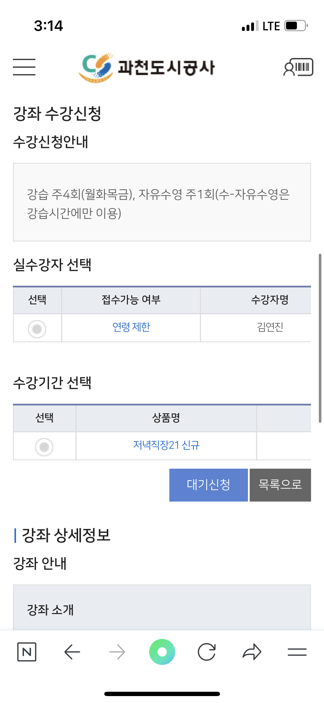 직장인저녁수영 신청하려고 하는데 왜 연령 제한이 걸리는 거죠?