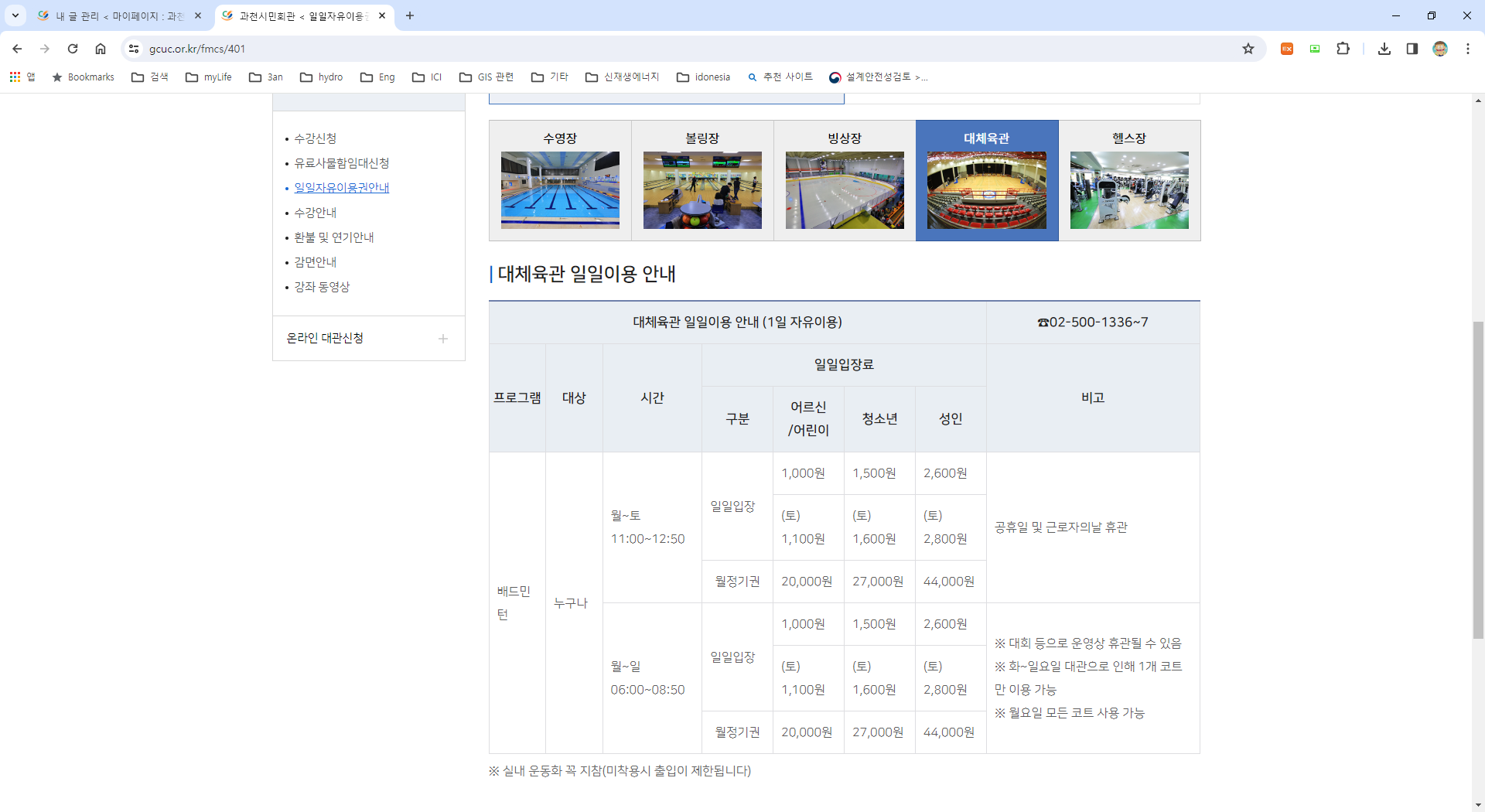 기타 궁금하신 점이나 건의사항은 02-500-1340(여가체육팀장)으로 연락주시