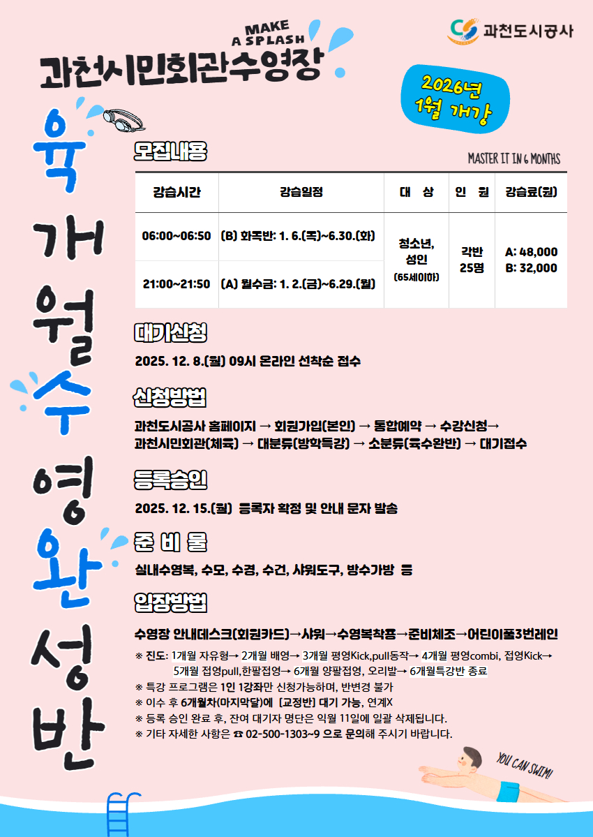 2026년 1월 육수완반(6개월수영완성반) 모집!!