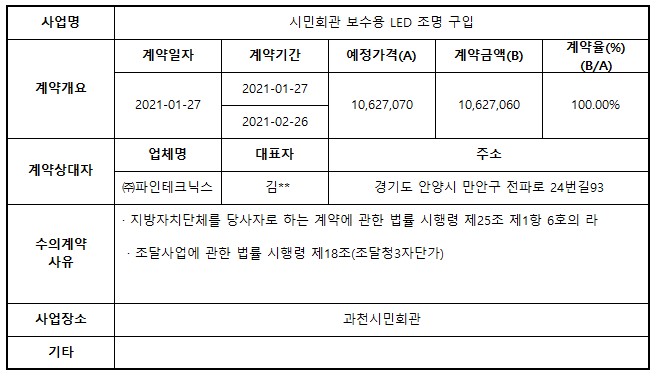2021년 1월 수의계약 내역 공개(시민회관 보수용 LED 조명 구입)
