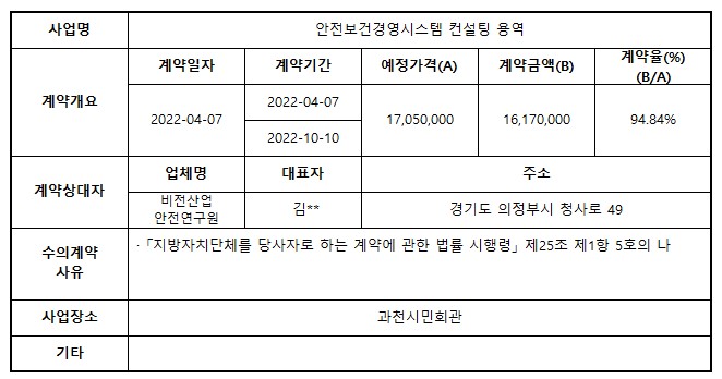 2022년 4월 수의계약 내역 공개(안전보건경영시스템 컨설팅 용역)