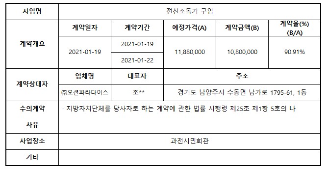 2021년 1월 수의계약 내역 공개(전신소독기 구입)