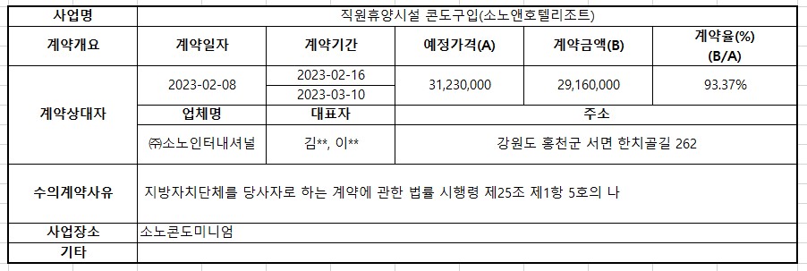 2023년 2월 수의계약 내역공개(직원휴양시설 콘도구입(소노앤호텔리조트))