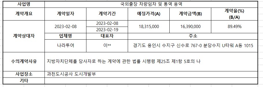 2023년 2월 수의계약 내역공개(국외출장 차량임차 및 통역 용역)