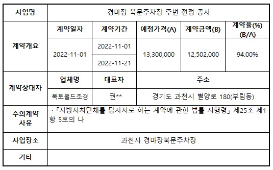 2022년 11월 수의계약 내역 공개(경마장 북문주차장 주변 전정 공사)