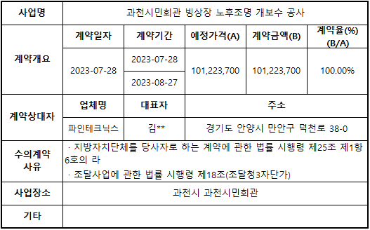 2023년 7월 수의계약 내역 공개(과천시민회관 빙상장 노후조명 개보수 공사(2))