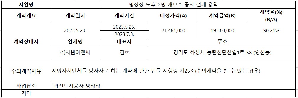 2023년 5월 수의계약 내역공개(빙상장 노후조명 개보수 공사 설계 용역)