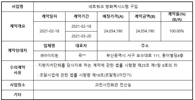 2021년 2월 수의계약 내역 공개(네트워크 방화벽시스템 구입)