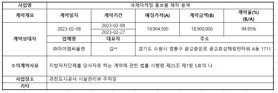 2023년 2월 수의계약 내역공개(국제마케팅 홍보물 제작 용역)