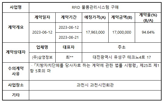 2023년 6월 수의계약 내역 공개(RFID 물품관리시스템 구매)