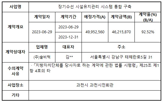 2023년 6월 수의계약 내역 공개(장기수선 시설유지관리 시스템 통합 구축)