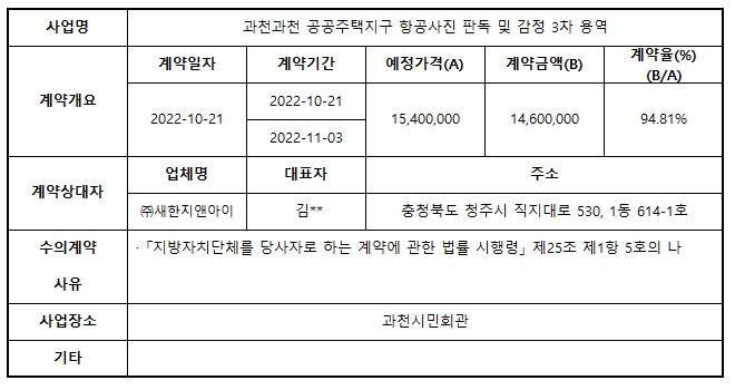 2022년 10월 수의계약 내역 공개(과천과천 공공주택지구 항공사진 판독 및 감정 3차 용역)